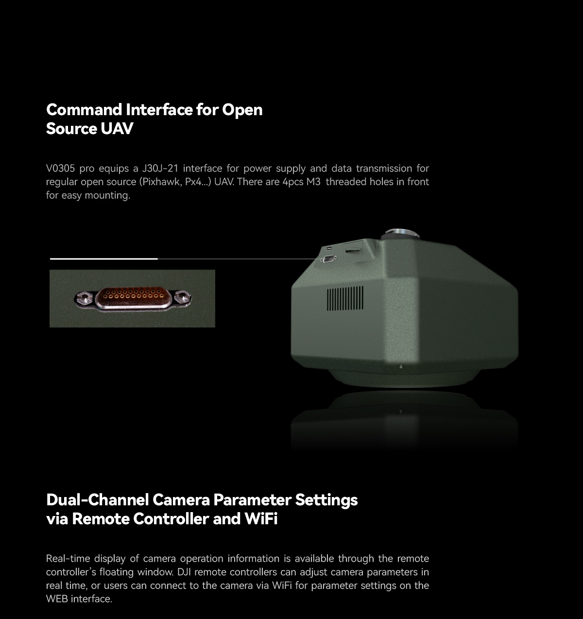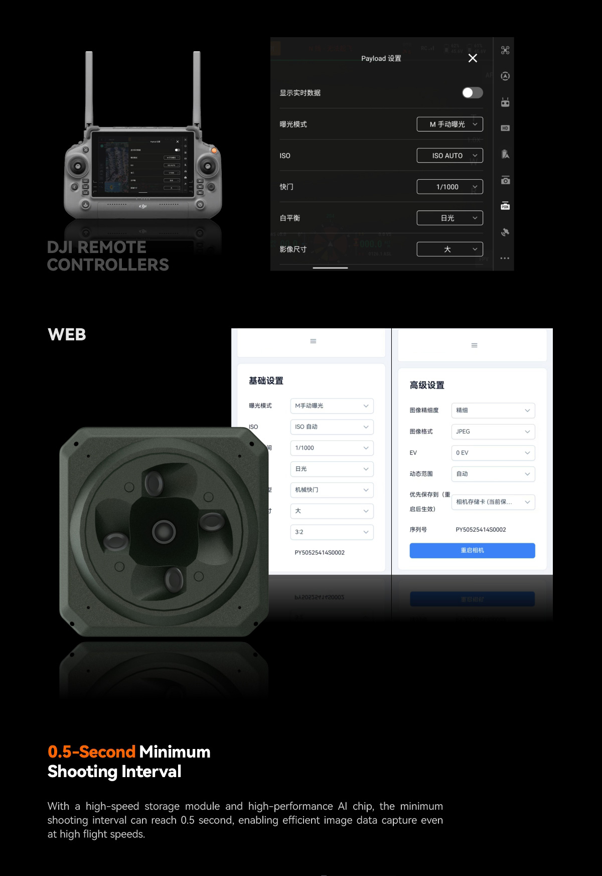 | Trigger Mode | Manual/Auto Trigger | Camera Parameter Settings | Adjust via **DJI Remote Controller** or **WiFi** |