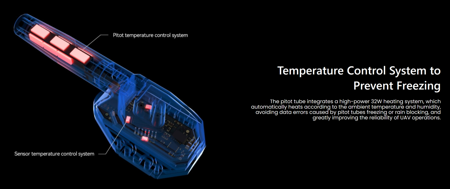 - **Intelligent De-Icing Technology**: Features a **32W pitot tube heating system** that automatically adjusts to ambient temperature and humidity.