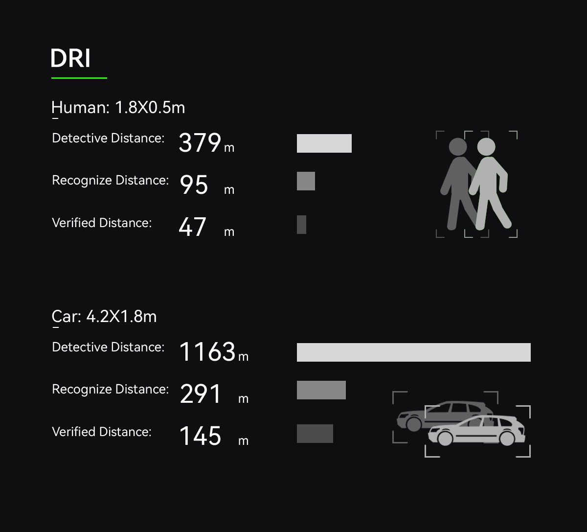 | Tanıma Mesafesi (İnsan: 1.8×0.5m) | 95 metre |