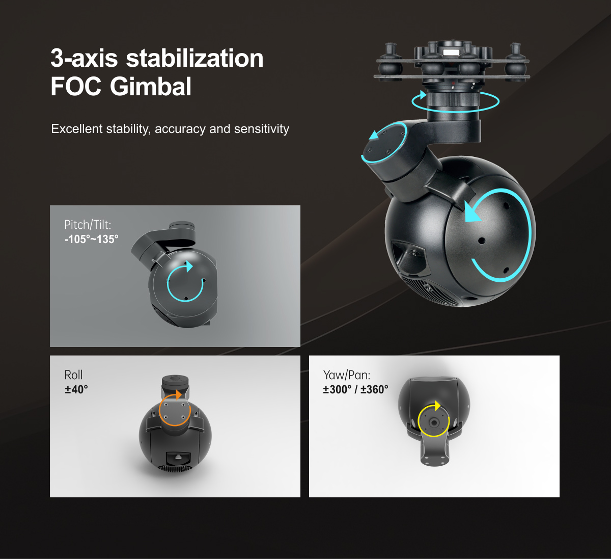 | Aksesuarlar | 1 adet gimbal kamera cihazı, vidalar, alüminyum silindirler, sönümleme topları, sönümleme kartları, 1 adet USB - TTL kablosu / Köpük yastıklı yüksek kaliteli plastik kutu |