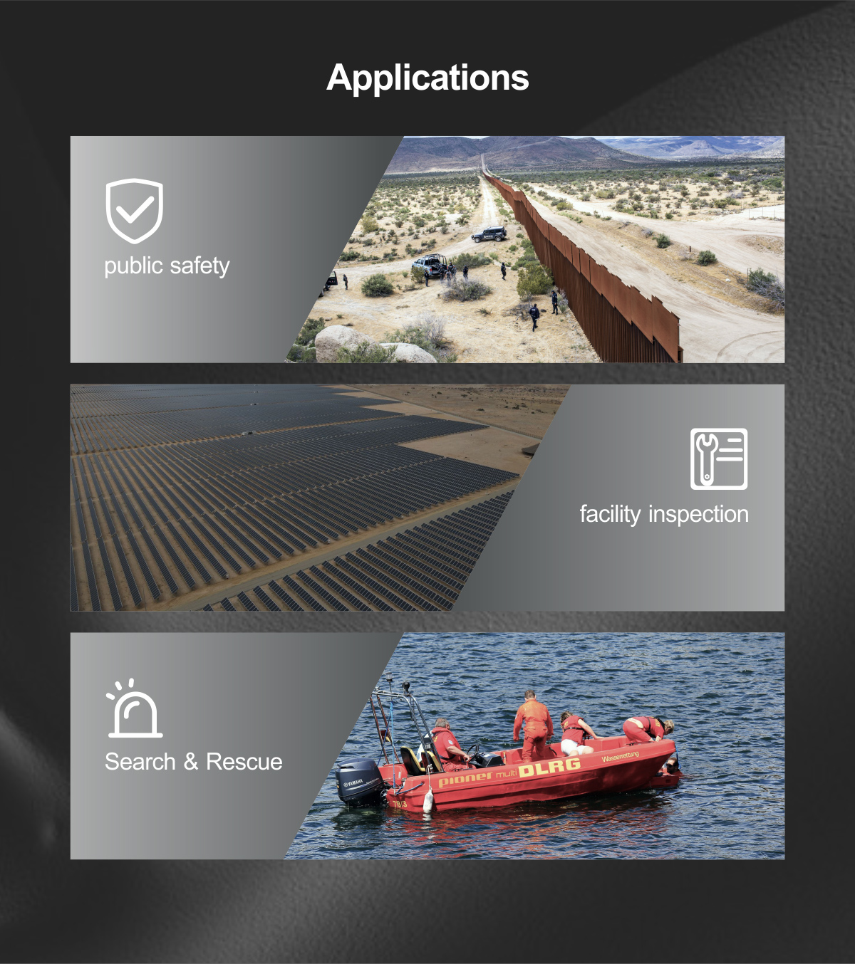 | OSD | Gimbal'ın yaw ve pitch açısını, büyütmeyi, kart kayıt süresini, hava aracı GPS'ini ve irtifasını, tarih ve saati gösterir |