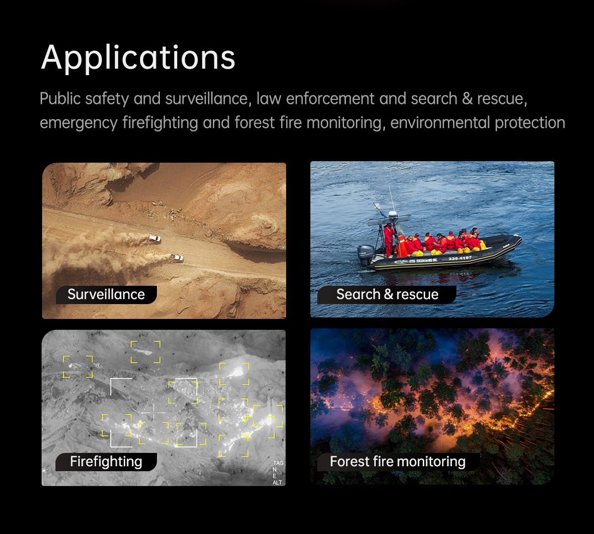 H4T Serisi, dört ana modülü entegre eder: 8K geniş açılı kamera, 8K zoom kamera, kızılötesi termal görüntüleme kamerası ve lazer telemetre. Yapay zeka algoritmalarıyla güçlendirilmiş olup enerji denetimi, acil durum itfaiyesi, su koruma ve ormancılık gibi sektörlerde operasyonel verimliliği büyük ölçüde artırır.